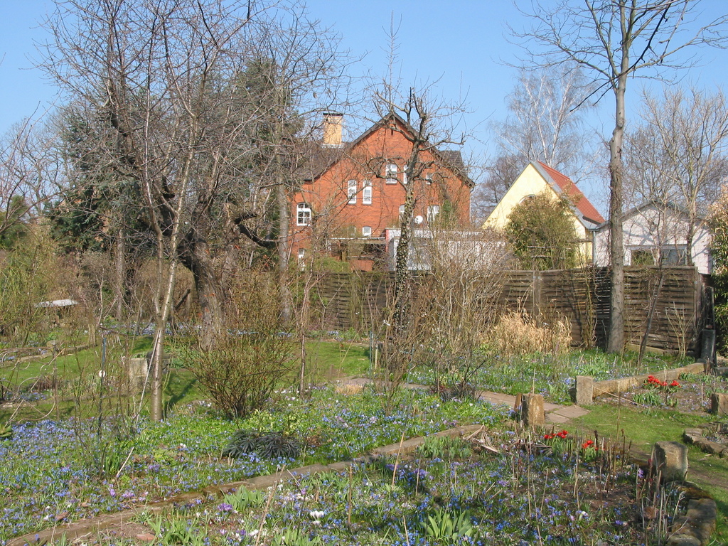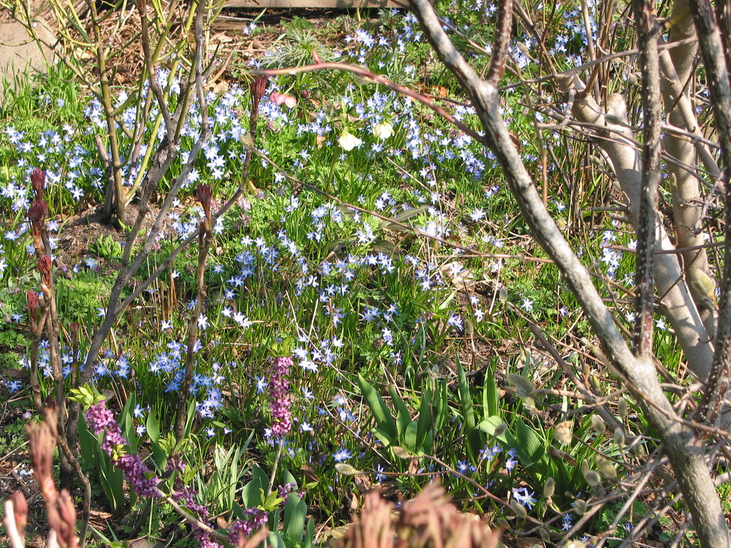 Unzählige Scilla färben den Garten im zeitigen Frühjahr