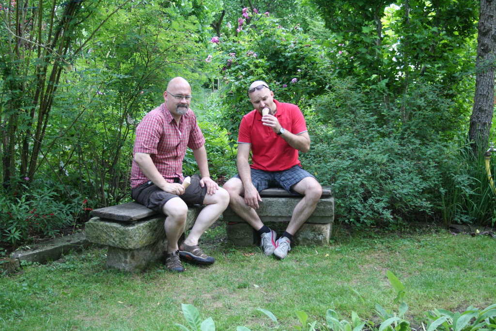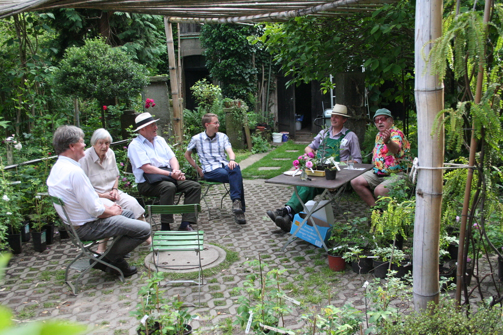 Rosenfest 2011: Alles Schart sich um Hanspeter Bethke, der immer unterhaltsame Geschichten und unendlich viel Gartenwissen parat hat.